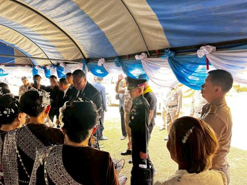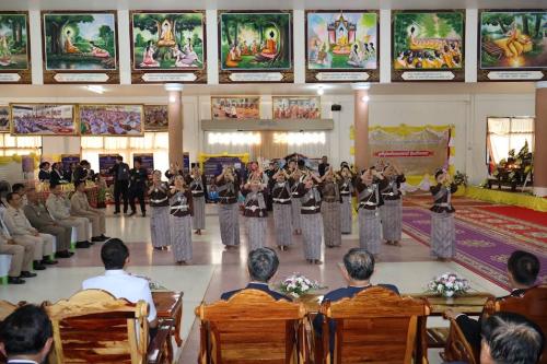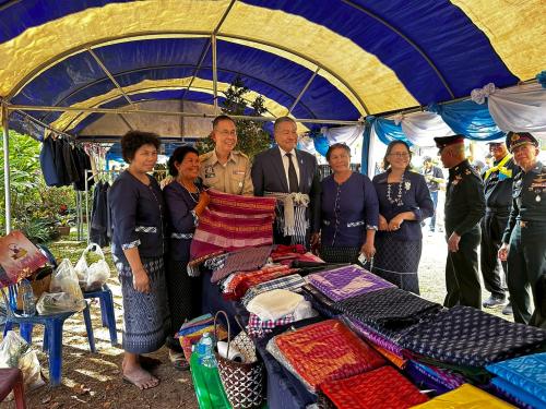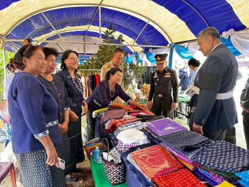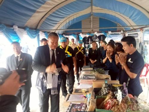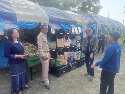 นายปัญโญ สำรวมจิตร พัฒนาการอำเภอเลิงนกทา พร้อมทีมงานเจ้าหน้าที่พัฒนาชุมชนอำเภอเลิงนกทา ร่วมต้อนรับคณะตรวจเยี่ยมฯ และประสานกลุ่มผู้ผลิต ผู้ประกอบ OTOP มาออกบูธแสดงสินค้าและจำหน่ายสินค้า ณ วัดเขมไชยาราม