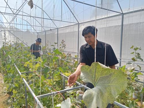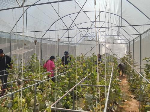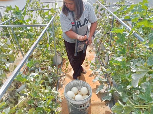 เวลา 13:30 นายปัญโญ สำรวมจิตร พัฒนาการอำเภอเลิงนกทา พร้อมด้วยทีมงานเจ้าหน้าที่พัฒนาชุมชนอำเภอเลิงนกทาและนักศึกษาฝึกงานจากวิทยาลัยชุมชนยโสธร ได้ลงพื้นที่ติดตามสนับสนุุนกลุ่มวิสาหกิจชุมชนบ้านศรีสวัสดิ์ ณ บ้านศรีสวัสดิ์ หมู่ 5 ตำบลศรีแก้ว อำเภอเลิงนกทา จังหวัดยโสธร โดยผลผลิตของกลุ่มประกอบด้วยเมล่อน และแคนตาลูป ซึ่งเมล่อนและแคนตาลูป ถือเป็นผลผลิตที่สำคัญที่สร้างรายได้ให้กับเกษตรกรในพื้นที่