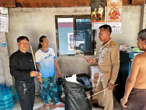 วันที่ 23 มีนาคม 2569 นายสันติประชา โรจนบุญถึง ปลัดอำเภอหัวหน้ากลุ่มงานบริหารงานปกครอง พร้อมด้วยทีมงานเจ้าหน้าที่พัฒนาชุมชนอำเภอเลิงนกทา ลงพื้นที่ติดตาม/เยี่ยมกลุ่มขวัญฤทัยธูปหอม ณ บ้านของนางขวัญฤทัย แวดศรี บ้านเลขที่ 150 บ้านศรีสวัสดิ์ หมู่ 5 ตำบลศรีแก้ว อำเภอเลิงนกทา ซึ่งผลิตธูปหอมส่งขายให้กับบริษัทที่จังหวัดร้อยเอ็ด และกรุงเทพฯ เพื่อสร้างรายได้ให้กับครอบครัว